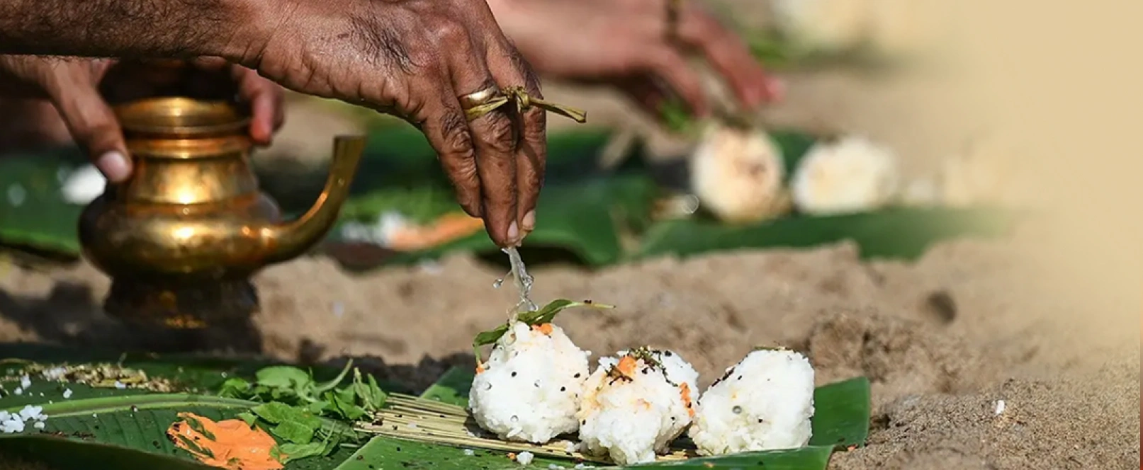 One of the most important and common rituals is the Tarpana, which involves offering water mixed with sesame seeds, barley, and black sesame seeds to the ancestors, after invoking them through sacred mantras. Some families perform havan or homam which is a more elaborate ritual of offerings. Rice balls mixed with black sesame seeds are offered into the sacred fire and blessings for the current and next generations. It is believed that performing these rituals on the last day of this paksham (amavasya day) bestows one with the same benefits as having performed the rituals at Gaya, the most special place to perform rites for departed ancestors.